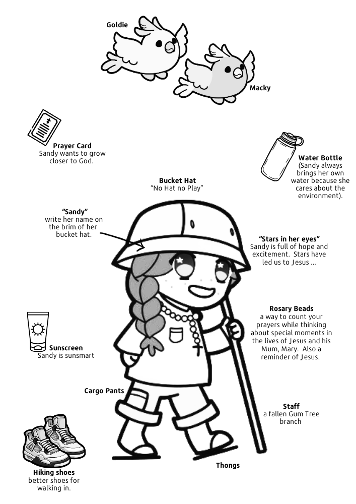 Sandy’s name, of course, is a nod to the Diocese of Sandhurst. Macky, the galah, is named in honour of Australia’s first saint, Mary of the Cross MacKillop, our Bishop, Shane Mackinlay, and all the “Mcs” and “Macs” who have contributed to the Diocese’s rich history. Goldie, the sulphur-crested cockatoo, represents the gold that has been so important in shaping the region, both physical gold which has drawn people to the area – and the metaphorical “gold” – the faithful people who have built and now continue to make the Diocese shine with warmth and generosity.